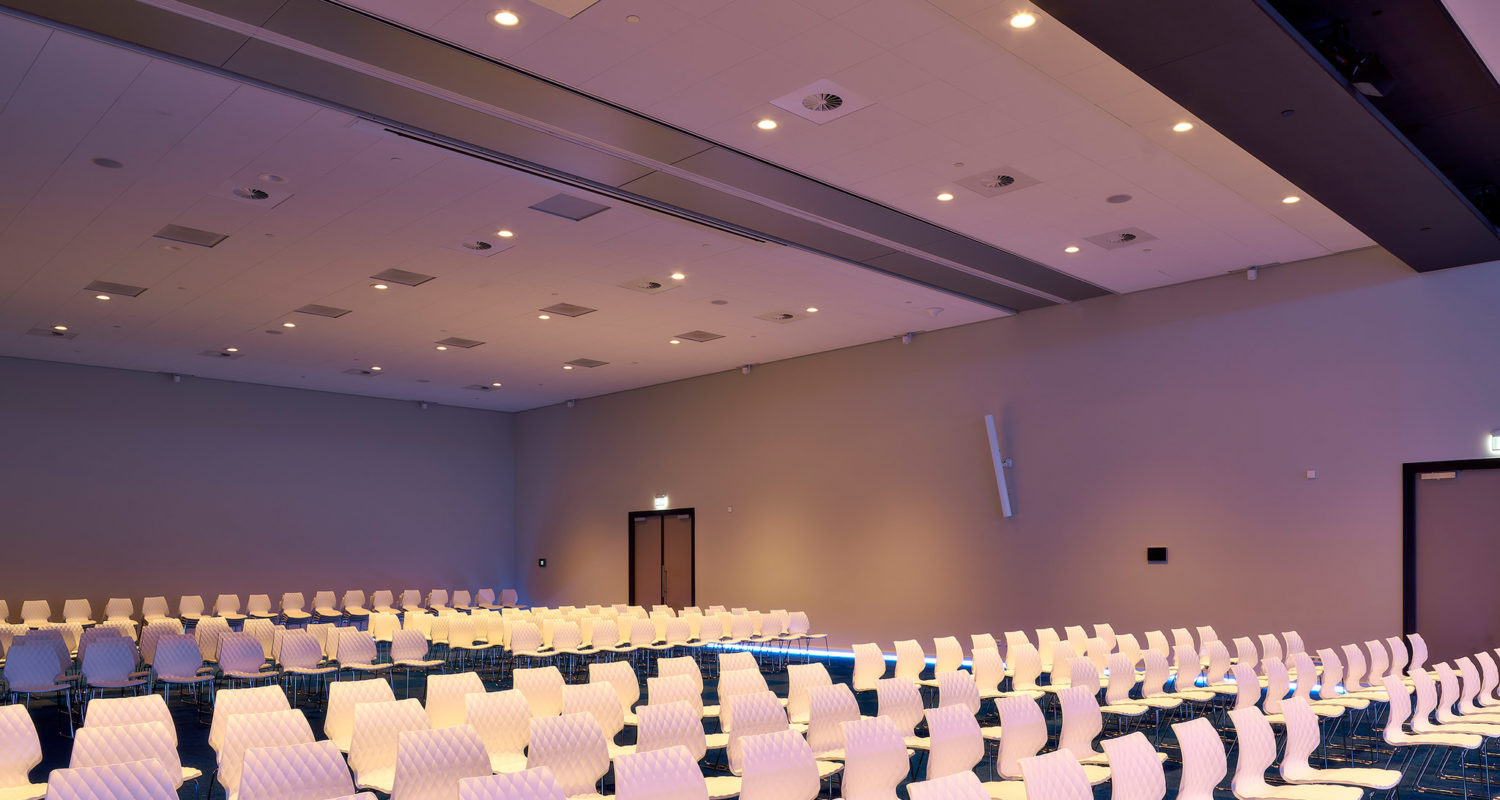 Skyfold est un système de cloisons de mobiles escamotables qui se stock dans la zone du plafond. Il est peu encombrant, ne nécessite pas de rails de guidage ou de roulement et offre une isolation acoustique jusqu'à Rw 59 dB.